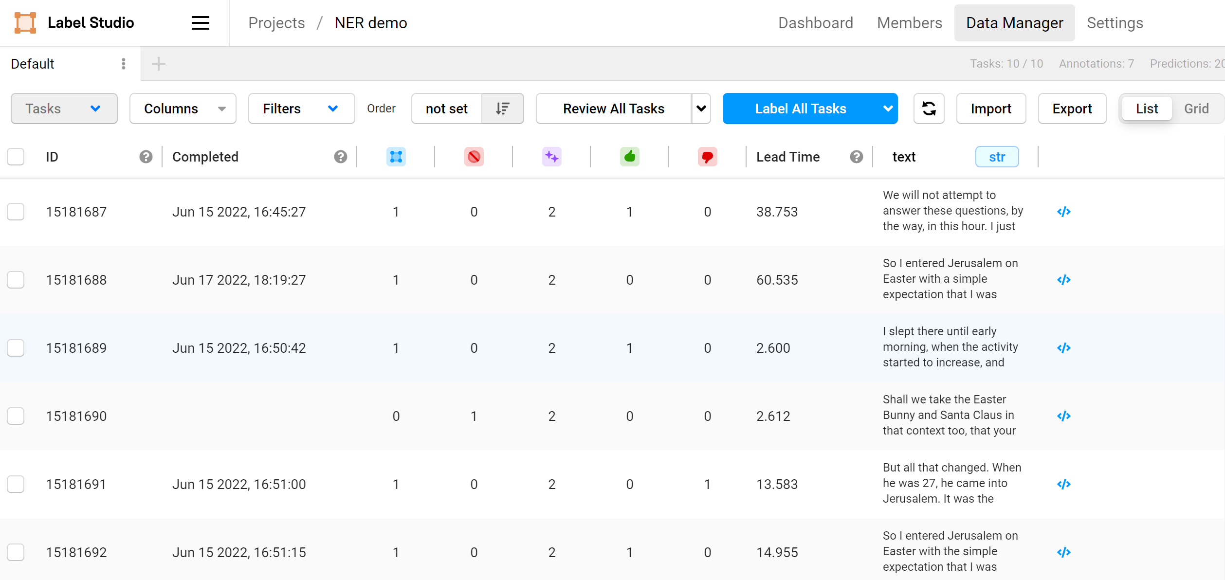 Last updated bycolumn in Data Manager with information ofupdated_at-updated_by, annotator/reviewer (the person who made the last modifications for any of the annotations in this task) atupdated_attime.